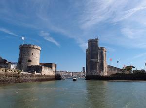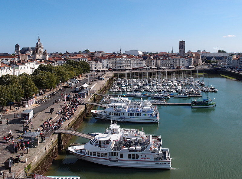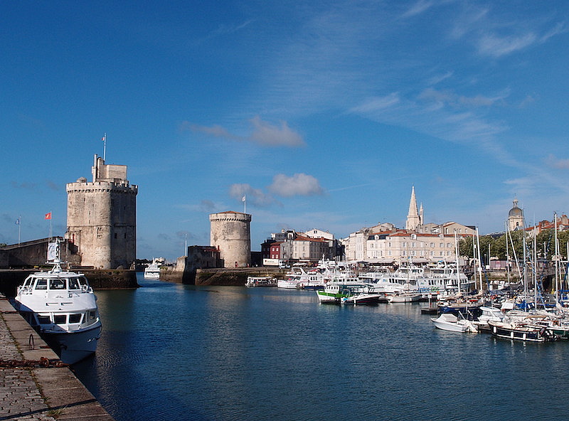 Na to, že je půl desáté a všechny atrakce jsou ještě zavřené, nábřeží už se hemží celými davy lidí. I kavárníci se tu naučili otevírat dřív, a tak už turisti posedávají v kavárničkách s výhledem na vodu (teda, na ty zbytky) a vyčkávají, až padne desátá a všechny ty řízené prohlídky a výlety a okruhy vypuknou. Naštěstí se většina lidí už teď hromadí ve frontách na parníky objíždějící okolní ostrovy – Ile d`Aix, Ile de Ré, Boyard a tak. To já už mám za sebou, dnes jsem tu výhradně kvůli samotné La Rochelle. A začnu jejími věžemi.