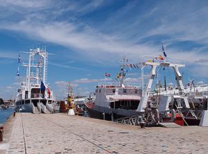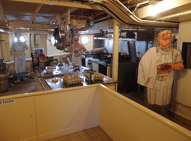 Hlavní atrakcí námořního muzea jsou ale skutečné lodi, které si člověk může prohlédnout. Nicméně abych to uvedla na pravou míru: Lodi jsou celkem tři (a to prý se ještě někdy stává, že je některá zapůjčená na jinou výstavu – ale já měla kliku a byly tu všechny), jejich historická hodnota je trochu sporná, protože pocházejí ze 60. a 70. let 20. století, a všem se sice může na palubu, ovšem jenom jedné se může i do podpalubí. Ta jedna je tak vlastně klíčovým trhákem a hlavní hvězdou celého muzea, jmenuje se France 1 a je to meteorologická fregata z roku 1958. Loď je zařízená tak, jak se až do 80 let skutečně používala, a popisky v jednotlivých kajutách se snaží vylíčit, jak to posádka měla na moři těžké. Což asi fakt měla, protože se tam muselo vmáčknout 50 chlapů, na moři byli vždycky celý měsíc a u toho prováděli meteorologická měření za každého počasí. Na druhou stranu většina kabin, i když maličkých (kolem 5 čtverečních metrů), byla jednolůžkových, důstojnící měli pro sebe dokonce celé apartmánky a loď vezla kromě kuchařů i dva pekaře – bez toho asi Francouz neopustí ani rodnou ves, natož pevninu.